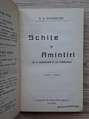 Titlu: Schite si amintiri cu o scrisoare a lui Caragiale (1922)