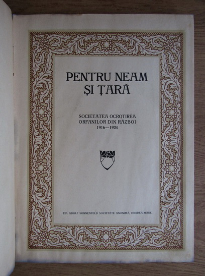 Titlu: Pentru neam si tara. Societatea ocrotirea orfanilor din razboi 1916-1924 (1924)