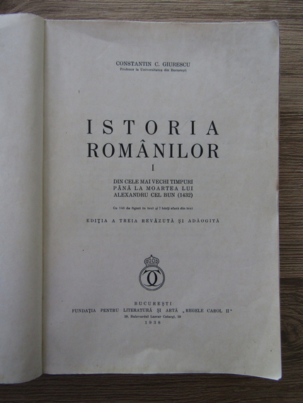 Titlu: Istoria romanilor (volumul 1, editia III, 1938)