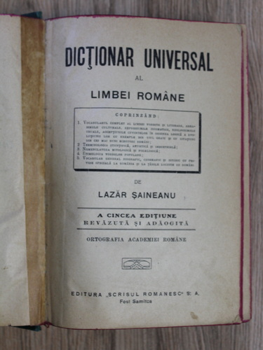 Lazar Saineanu - Dictionar universal al limbei romane (a cincea editiune, 1925)