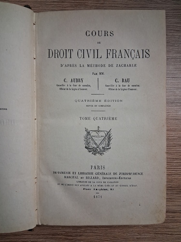 C. Aubry - Cours de droit civil francais (volumul 4, 1871)