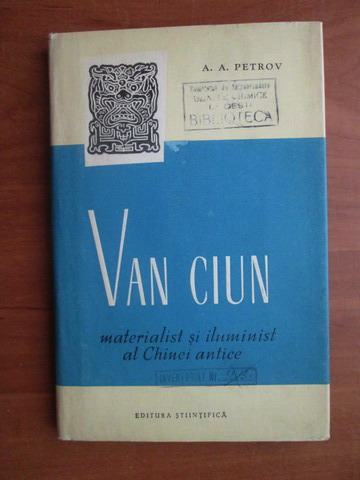 Autor: A. A. Petrov Titlu: Van Ciun. Materialist si iluminist al Chinei antice Editura: Stiintifica An aparitie: 1958 Nr pagini: 130 Format: mediu (13x20 cm) Coperti: cartonate Carte in limba: romana Stare : buna 22 F