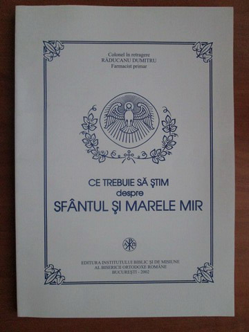 Titlu: Ce trebuie sa stim despre sfantul si marele mir Editura: Institutului Biblic si de Misiune al Bisericii Ortodoxe Romane An aparitie: 2002 Nr pagini: 150 Format: mai mare (16x23 cm) Coperti: brosate Carte in limba: romana Stare : buna 63 E