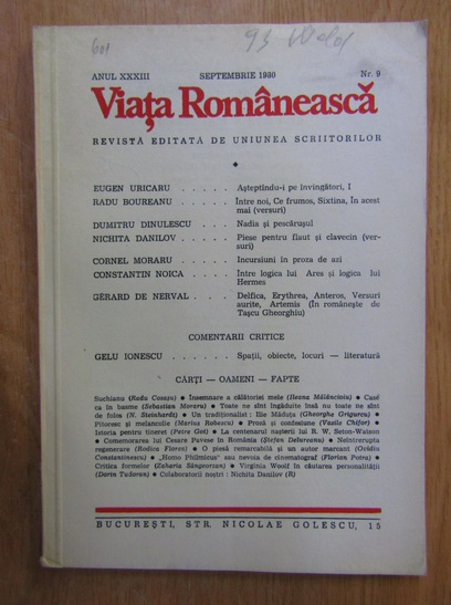 Titlu: Revista Viata Romaneasca, anul XXXIII, nr. 9, septembrie 1980