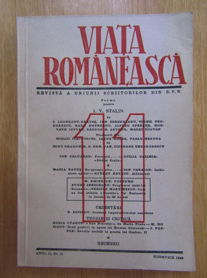Titlu: Revista Viata Romaneasca, anul II, nr. 11, noiembrie 1949