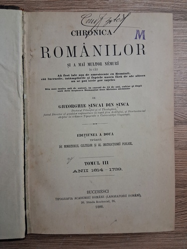 Titlu: Chronica romanilor (3 volume, 1886)