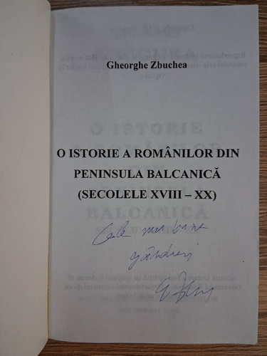 Gheorghe Zbuchea - O istorie a romanilor din Peninsula Balcanica, secolul XVIII-XX (cu autograful autorului)