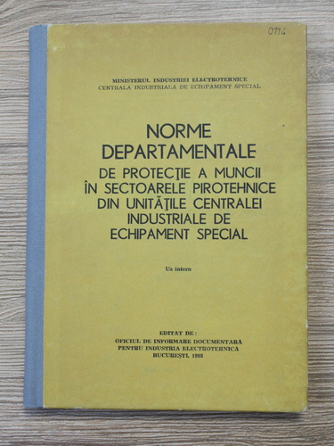 Titlu: Norme departamentale de protectie a muncii in sectoarele pirotehnice din unitatile centralei industriale de echipament special