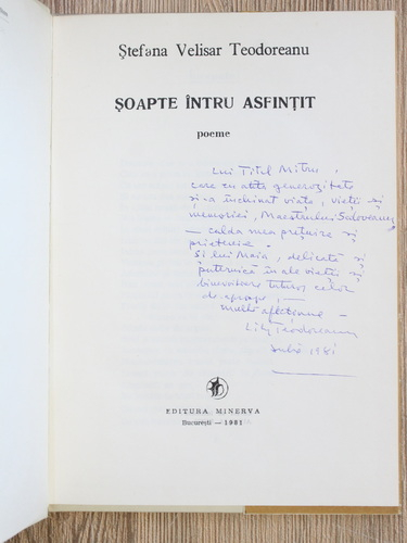 Stefana Velisar Teodoreanu - Soapte intru asfintit (cu autograful autoarei)