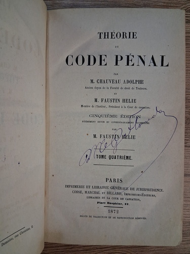 Titlu: Theorie au code penal (1872, volumul 4)