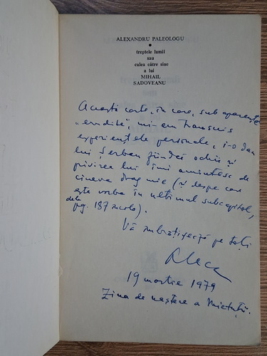 Alexandru Paleologu - Treptele lumii sau calea catre sine a lui Mihail Sadoveanu (cu autograful autorului)