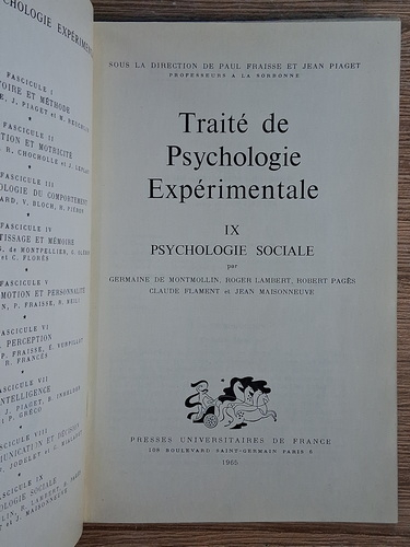 Titlu: Traite de psychologie experimentale, volumul 9. Psychologie sociale