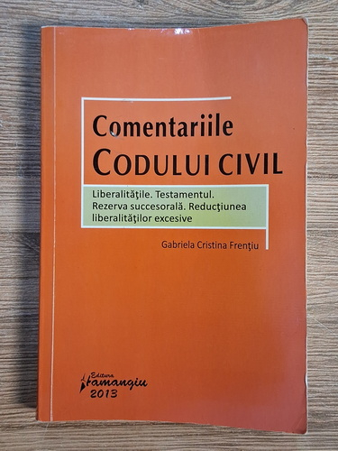 Titlu: Comentariile codului civil. Liberalitatile. Testamentul. Rezerva succesorala. Reductiunea liberalitatilor excesive