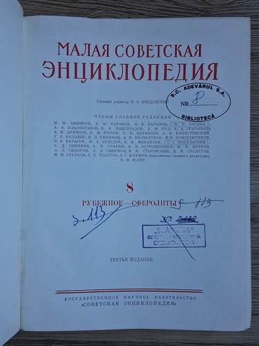 Mica enciclopedie sovietica, volumul 8. De la Rubejnoe la Sferolifi