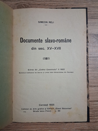 Simeon Reli - Documente slavo-romane din sec. XV-XVII (1925)