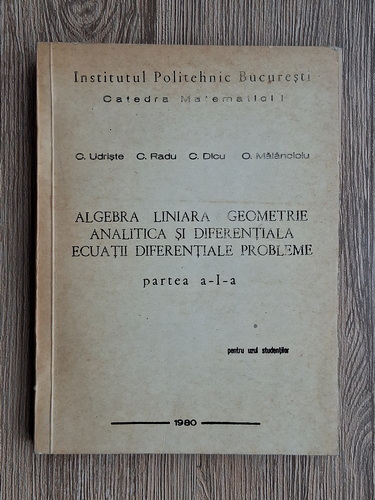 C. Udriste - Algebra liniara, geometrie analitica si diferentiala, ecuatii diferentiale. Culegere de probleme