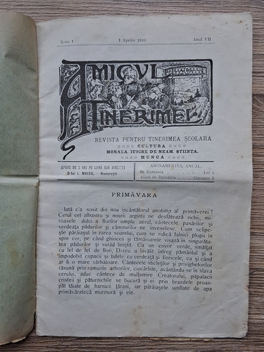 Titlu: Revista Amicul Tinerimei, anul VII, no. 1, 1 aprilie 1910
