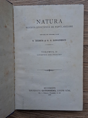 G. Titeica, G. G. Longinescu - Natura. Revista stiintifica de popularizare (volumul 2, 1906)