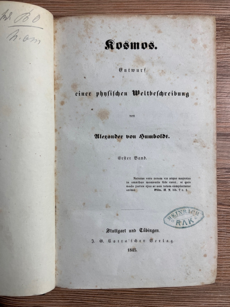 Titlu: Kosmos. Entwurf einer physischen Weltbeschreibung (volumul 1, 1845)
