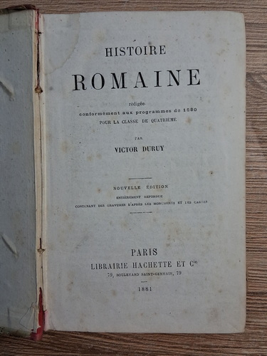 Titlu: Histoire Romaine redigee conformement aux programmes de 1880 pour la classe de quatrieme (1881)