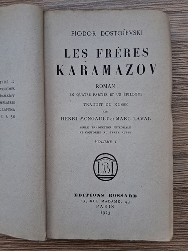 Titlu: Les freres Karamazov (3 volume, 1923)