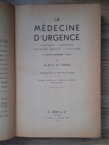 C. Oddo, J. Oddo - La medecine d'urgence. Symptomes, diagnostic, traitement immediat, formulaire (1945)
