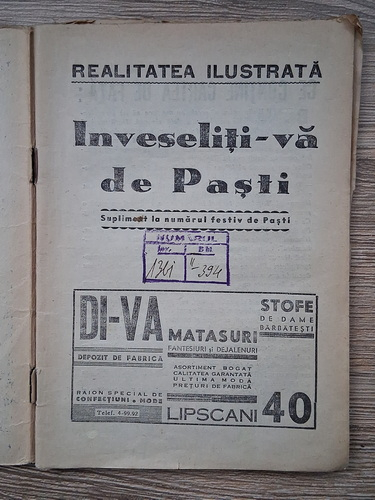 Titlu: Revista Realitatea ilustrata. Inveseliti-va de Pasti (supliment la numarul festiv de Pasti, 1930 aprox.)