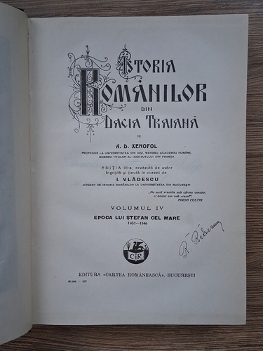 Titlu: Istoria romanilor din Dacia Traiana (volumele 4, 5 si 6 colegate, 1927)