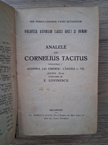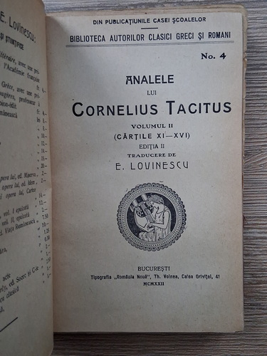 - Analele Lui Cornelius Tacitus (volumul 1, cartile I-IV)