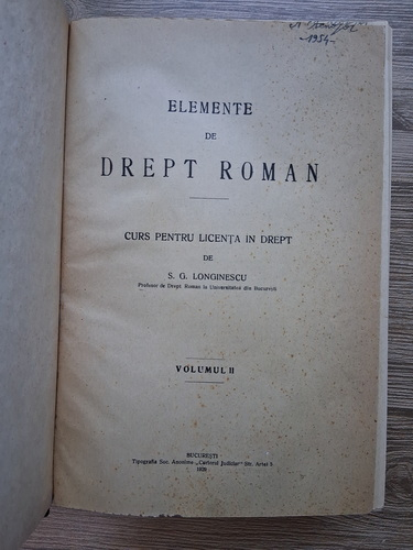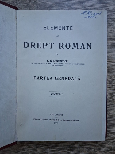 S. G. Longinescu - Elemente de Drept Roman (2 volume, 1908)