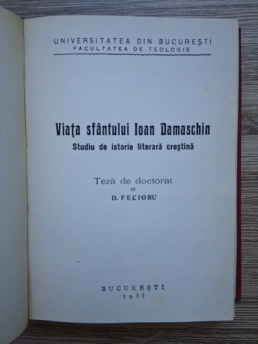 D. Fecioru - Viata sfantului Ioan Damaschin. Studiu de istorie literara crestina (1935)