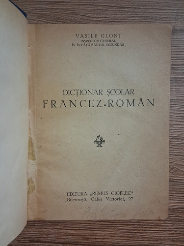 Vasile Glont - Dictionar scolar francez-roman (1947)