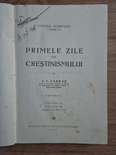 Titlu: Ogorul Domnului, volumele 16 si 17, colegate. Primele zile ale crestinismului, partea a II-a si a III-a (1938)