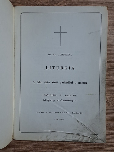 Titlu: De la Dumnidzau, Liturgia. A tilui ditu sinti parintilui a nostru Ioan Gura di Amalama, Arhiepiscopu ali Constantinopole