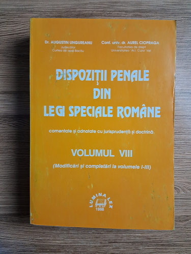 Augustin Ungureanu - Dispozitii penale din legi speciale romane comentate si adnotate cu juriprudenta si doctrina, volumul VIII. Modificari si completari la volumele I-III