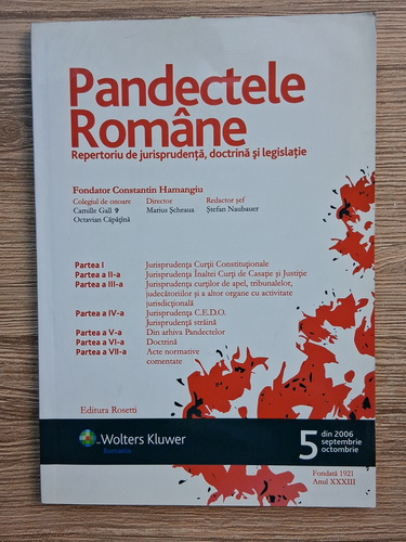 Revista Pandectele Romane, nr. 5, anul XXXIII, septembrie-octombrie, 2006