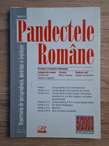 Revista Pandectele Romane, nr. 5, anul XXX, septembrie-octombrie 2003