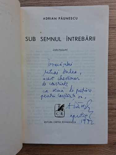 Titlu: Sub semnul intrebarii. Interviuri (cu autograful autorului)