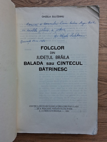 Titlu: Folclor din judetul Braila. Balada sau cintecul batrainesc