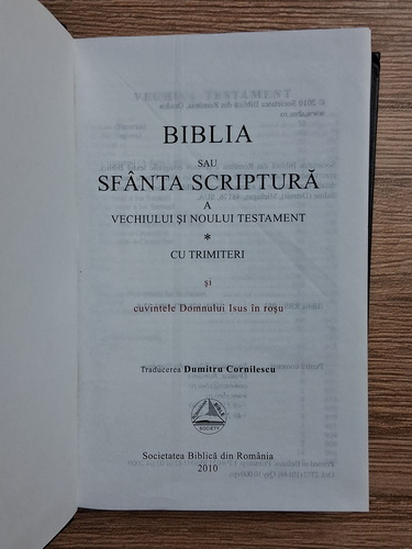 Titlu: Biblia sau Sfanta Scriptura a Vechiului si Noului Testament cu trimiteri si cuvintele Domnului Isus in rosu (2010)