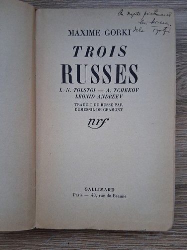 Titlu: Trois russes. L. N. Tolstoi, A. Tchekov, Leonid Andreev (1935)