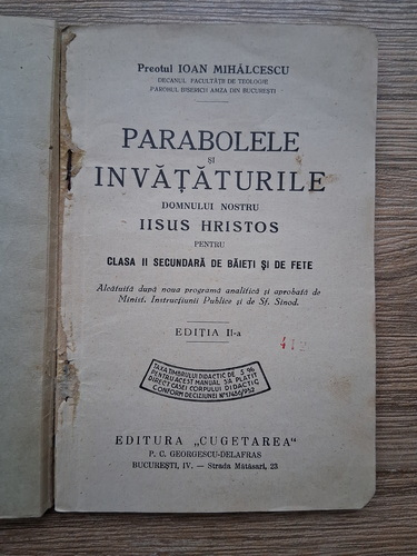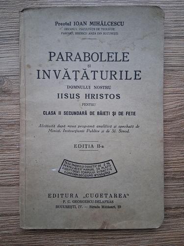 Ioan Mihalcescu - Parabolele si invataturile Domnului Nostru Iisus Hristos pentru clasa II secundara de baieti si de fete (1932)