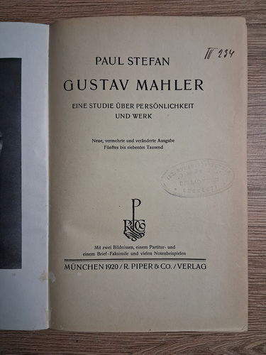 Titlu: Gustav Mahler. Eine studie uber personlichkeit und werk (1920)