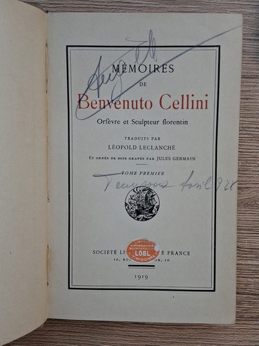 Titlu: Memoires de Benvenuto Cellini, orfevre et sculpteur florentin (2 volume, 1919)