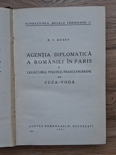 R. V. Bossy - Agentia diplomatica a Romaniei in Paris si legaturile politice franco-romane sub Cuza-Voda (1931)