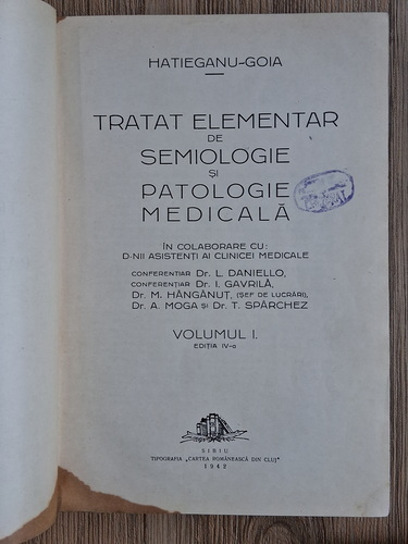 Hatieganu Goia - Tratat elementar de semiologie si patologie medicala (3 volume, 1941-1948)
