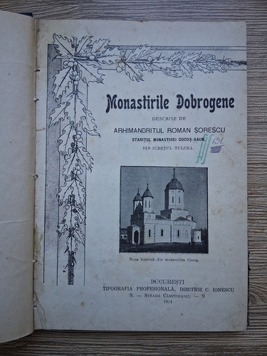 Titlu: Monastirile Dobrogene descrise de Arhimandritul Roman Sorescu, staretul Manastirii Cocos-Saun din judetul Tulcea (1914)