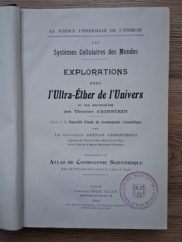 Titlu: Explorations dans l'Ultra-Ether de l'Univers et les anomalies des Theories d'Einstein (1922)