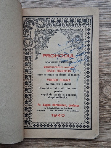 Titlu: Prohodul Domnului Dumnezeu si Mantuitorului Nostru Iisus Hristos care se canta in sfanta si marea Vineri seara (1940)