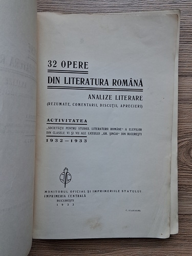 Titlu: 32 opere din literatura romana. Analize literare (1933)